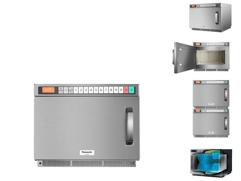 Ipari készülék. GN 1/2 méretű 18 literes kamra. Két magnetron ( 2×900 W ). Panasonic által fejlesztett egyedi inverter technológia biztosítja a beállított üzemi teljesítmény tökéletesen pontos és egyenletes leadását. Energiatakarékos működés. Elektronikus vezérlés. Négy teljesítményszint. 1800 W magas, közepes-magas teljesítmény 60-70-80 vagy 90%, közepes 40-50%, alacsony 25-30% és 340 W olvasztás. 30 programtárhely. Három időtartam és három teljesítményszint megadási lehetőség. 30 perc időbeállítás. LCD kijelző. Kamravilágítás. Rozsdamentes acél kamraburkolat. Kerámia padlótálca. Rozsdamentes acél külsőburkolat. Oldalra nyíló rozsdamentes acél teli ajtó. Baloldali nyitásirány. Frontoldalon beépített tisztítható légszűrő. Helytakarékos modell, két készülék egymásra rakható. Egyszerű kezelés. Könnyű tisztítás. Megbízhatóság, hosszú élettartam.
