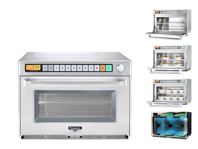 Ipari készülék. GN 1/1 méretű 44 literes kétszintre osztható kamra. Négy magnetron ( 4×450 W ) biztosítja a beállított teljesítményszint leadását és annak egyenletes elosztását. Elektronikus vezérlés LCD kijelzéssel. Négy teljesítményszint. 340 W alacsony, 900 W közepes, 1800 W magas és 170 W olvasztás. 16 programtárhely. Három időtartam és három teljesítményszint megadási lehetőség. 60 perc időbeállítás. Kamra több tányér, levescsésze vagy 2 db. GN 1/1 méretű edény befogadására is alkalmas. Kamravilágítás. Rozsdamentes acél külső és kamraburkolat. Kerámia padlótálca. Lefele nyíló ajtó biztonsági üveggel. Frontoldalon beépített tisztítható légszűrő. Egyszerű kezelés. Könnyű tisztítás. Megbízhatóság, hosszú élettartam.